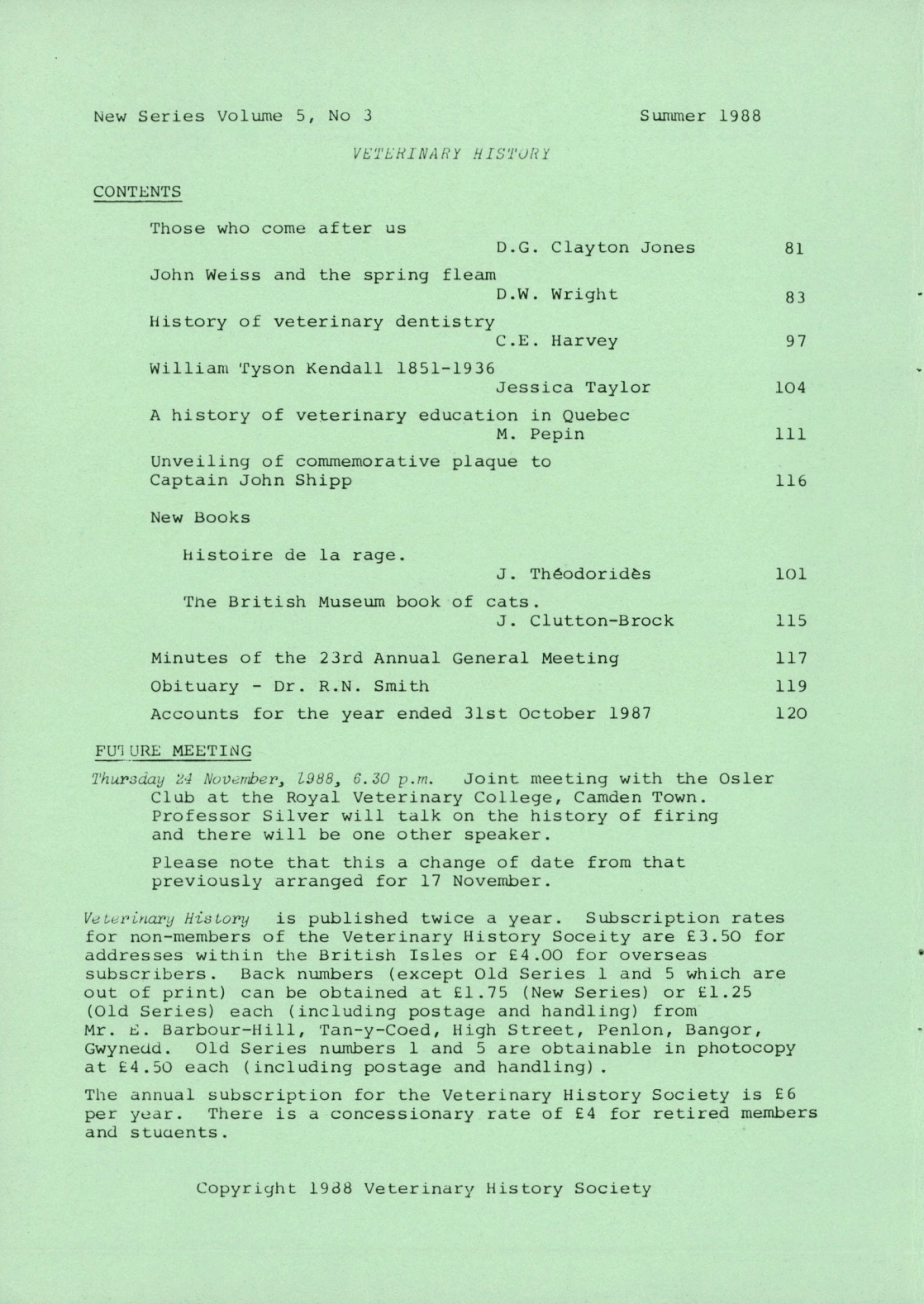 William Tyson Kendall was born in Cumbria in 1851 and qualified form the ‘Dick‘ Vet College in Edinburgh in 1873. He arrived in Australia in 1880 and decide to settle in Melbourne, where he opened a veterinary practice. At that time there were only 12 qualified vets in whole of Australia. Kendall led a campaign for a veterinary surgeons act to recognise and give a legal status to the profession, which was achieved in 1887. Kendall and Graham Mitchell had the foresight and courage to campaign successfully for the establishment of a veterinary college in Melbourne, which opened in 1888. Kendall and Michell produced the ‘Australian Veterinary Journal’ and later the ‘Australian Veterinary and Livestock Journal’. Kendall had many other interests. He died in 1936.